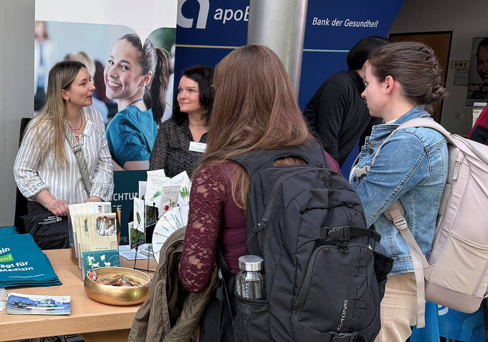 Da man an die Versorgung im Alter nicht früh genug denken kann, haben wir die Gelegenheit genutzt, uns den angehenden Medizinerinnen und Medizinern vorzustellen und über wichtige Zukunftsthemen zu informieren.