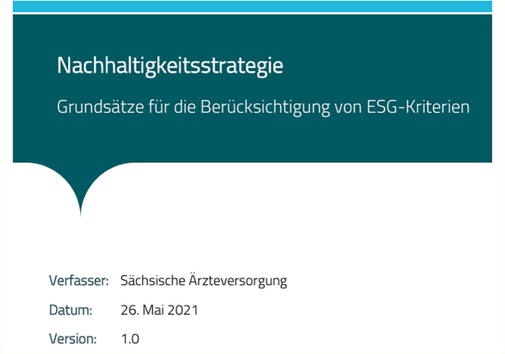 - Entwicklung der Nachhaltigkeitsstrategie: Die kritisch-konstruktive Auseinandersetzung mit den Möglichkeiten und Grenzen eines nachhaltigen Wirkens der Sächsischen Ärzteversorgung hat im Ergebnis zur Entwicklung einer Nachhaltigkeitsstrategie (PDF) geführt.